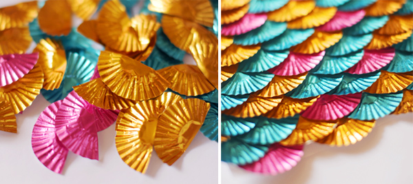Judging by the photo, the scale was sculpted in something like clay, molded, and many casts were made from the original scale...from there, assembled, then probably cast into a scale sheet, then the tail building process continues from there. The scales look identical and there is no size variation which leads me to think there is only one original scale. A lot of work and some extra steps, but WOW! If I were to use that technique, I might make scales in a few different sizes, smaller ones for the lower tail, larger for the upper area and a medium size for waist, sides, and seam areas.