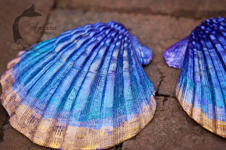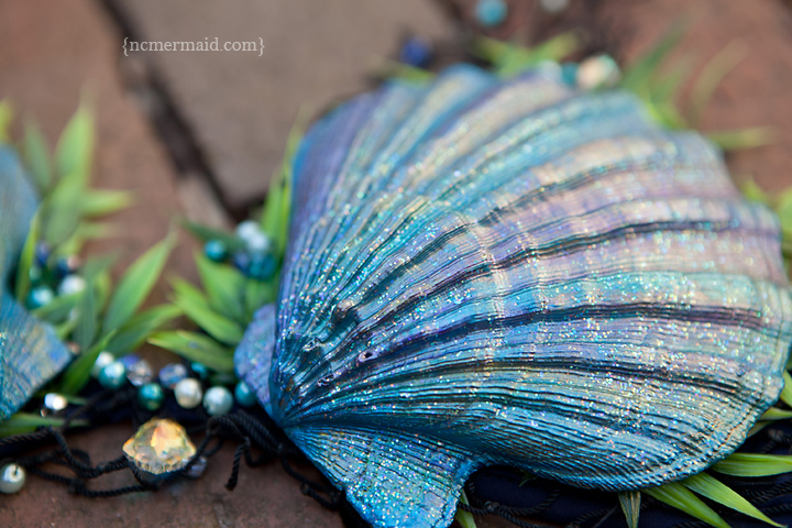 So I decided to repaint a bra I made last year. I need a top to match a sparkle walking tail I made and I had two pretty turquoise shells, and was going to make a brand new top, but decided to just sell those sells and repaint my other and add glitter