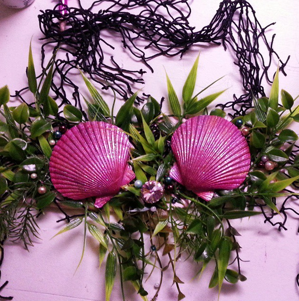 Here's my top, its made with scales, bikini top, and ballet tights.