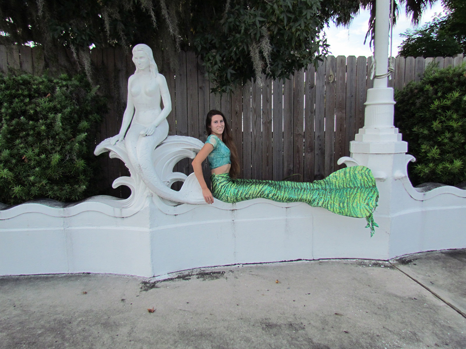 Over the weekend my family took a trip to see my Grandparents. We had about a 9 hour trip to my Grandparents and I had been begging for my parents to stop by Weeki Wachee. We got there and it was closed, but fortunately the parking lot was open and there was a beautiful white fence with mermaid statues. My Mom was taking pictures of me in my tail by a mermaid statue and my Dad waited in the car with the dog. I was nervous at first because there were 2 cars at the far end of the parking lot with people in them. After the photoshoot my Dad said that in one car there was a girl with long brown hair kind of like mine and he said that she pulled out of the parking lot and drove into the median but then looked and saw my Mom taking photos of me in my tail by the statue and she backed up out of the median to get a better look and then she gave a thumbs up to us and drove off. We all like to think it was one of the Weeki Wachee Mermaids, but who knows...? When we first pulled up I had a super amazing surprise! I know you all don't know me that well yet, but if you haven't noticed yet from my signature I am a peacock (peafowl) breeder so I LOVE peacocks! I had been thinking it would be beautiful to have a spring with peacocks and lo and behold Weeki Wachee has very friendly peacocks that greeted us when we parked. They came out and we hand fed them some treats. On the way back home we got to Weeki Wachee on time but there was a huge downpour and they closed the park due to the downpour and the lightning that was on its way. We learned from the lady at the counter that you can't wear any kind of tail in the spring. I guess I thought before that you just couldn't get special permission to wear a tail in the area where the mermaids perform, but instead you can't wear a tail anywhere in the spring even the area open to everyone. That was a bummer but I understand why as I can think of several reasons such as publicity, liability, ruining the magic, etc. Someday I will get to go past the entrance building haha!