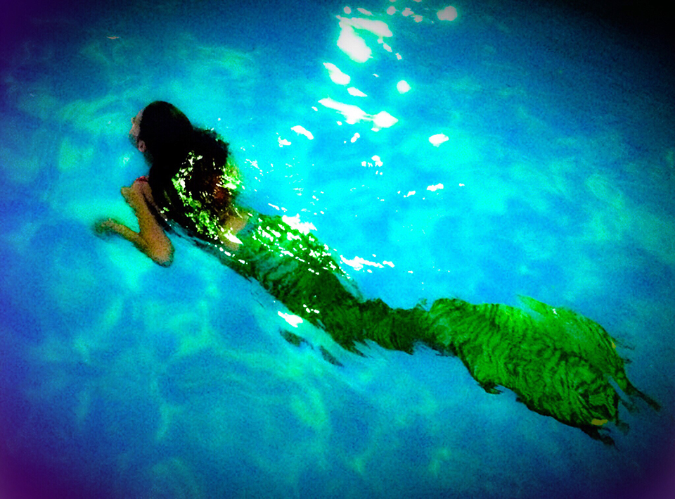 I didn't get to do much mermaiding once we got to our destination. I did swim in the hotel pool at night for my Grandparents and my Aunt. I swam in a pool that at its deepest was 5ft. and it had a very rough finish so I was definitely trying to be super careful with my tail. This was the only swimming photo that turned out decent haha.