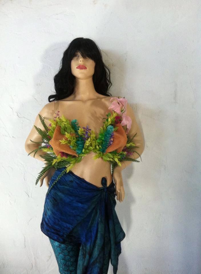 Here's one I made recently for Mermaid Bree in florida. :) Cast the starfish myself, as well as sewed and glued all the foliage. ^.^