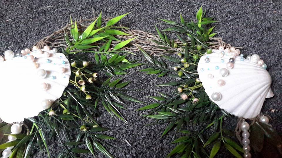And then there is the plants for the "fan". Which are exactly the same, only change was an additional branch or two was added to make it even (note the color difference between the main bulk and the ones on the upper and lower edge of the fan). You can also see the tiny little piece that hooks over the shell in both pictures.