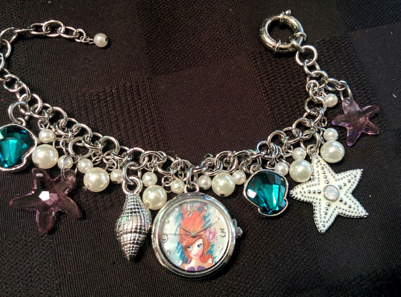 I didn't make this but I did have to do a repair! The little glass star on the right had snapped off which is why I got this collectible so cheap; a little nail glue and voila! Complete again. ;D I needed a watch for work and was excited to be able to bring a little mermaid (Ha!) into my everyday life!