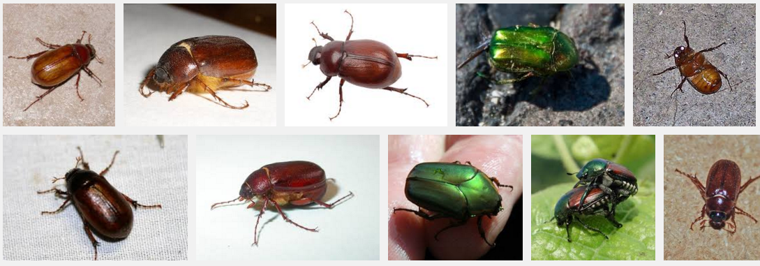 June bugs, May beetles, Japanese beetles...they are real pests. Harmless, but they eat your flowers and veggies!