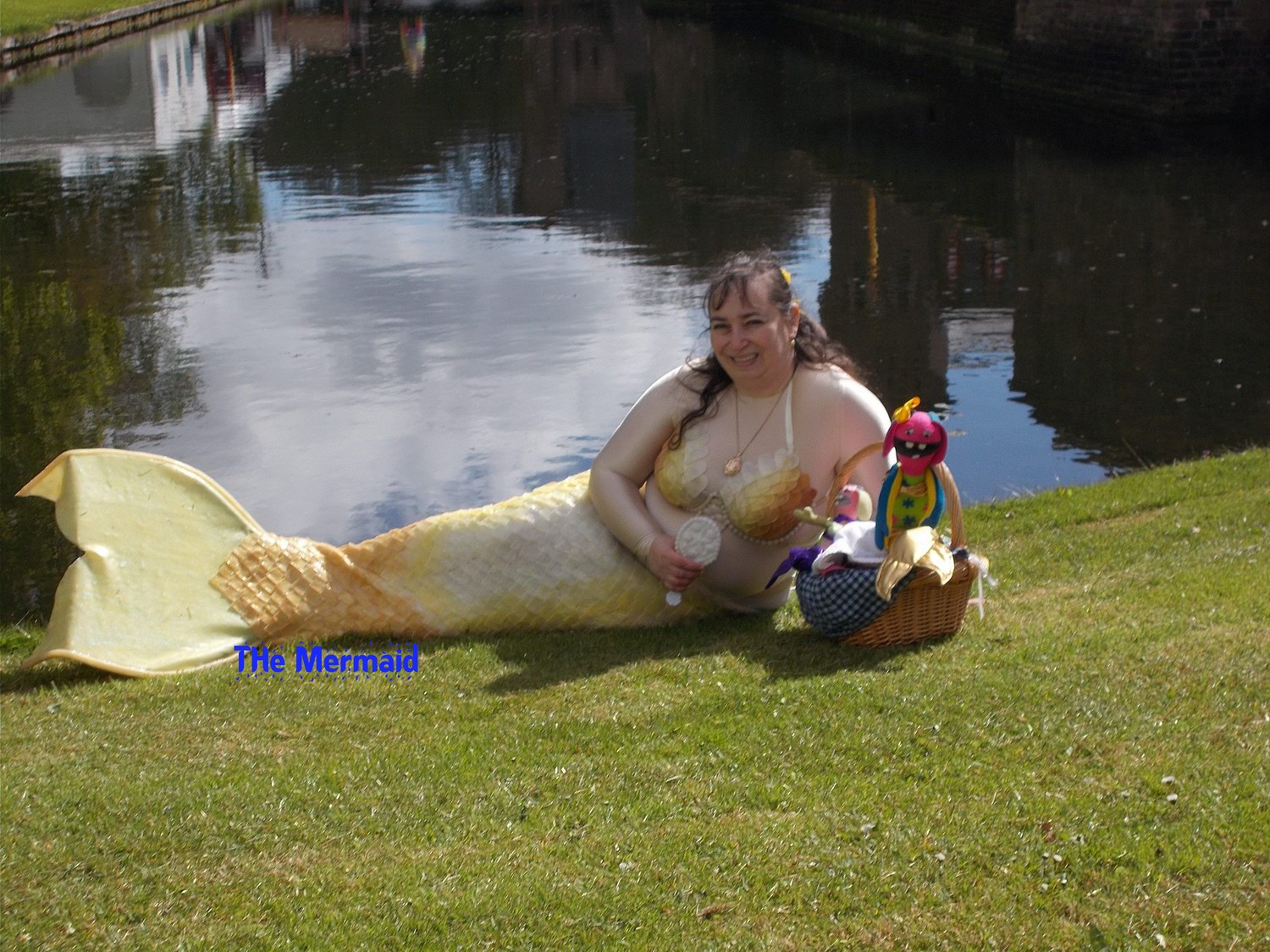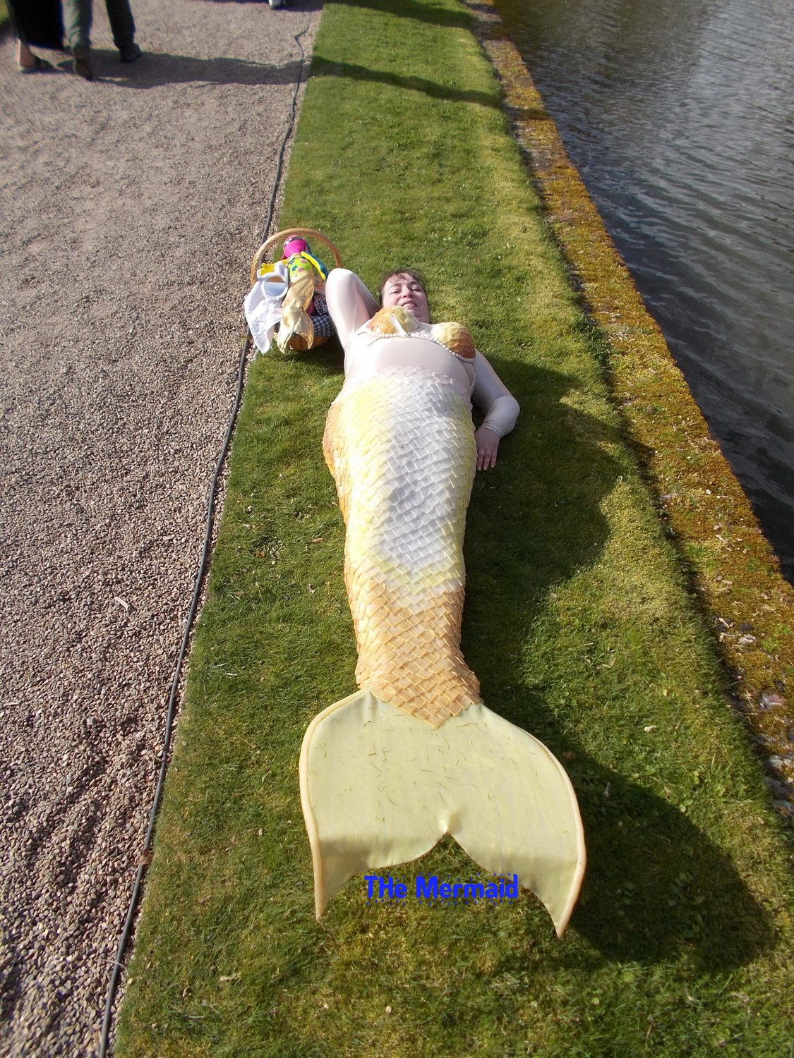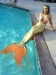 The gold tail is a latex fabric, and has a very cute attached top with keyhole stomach and back area, very pinup like. The Mahina monofin isn't sealed in so I can walk in it. I just made this one last month.