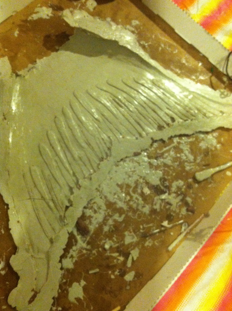 Sculpted straight on wood with trace of monofin. Looks how high the edges rise. I tried to fill the whole thing!