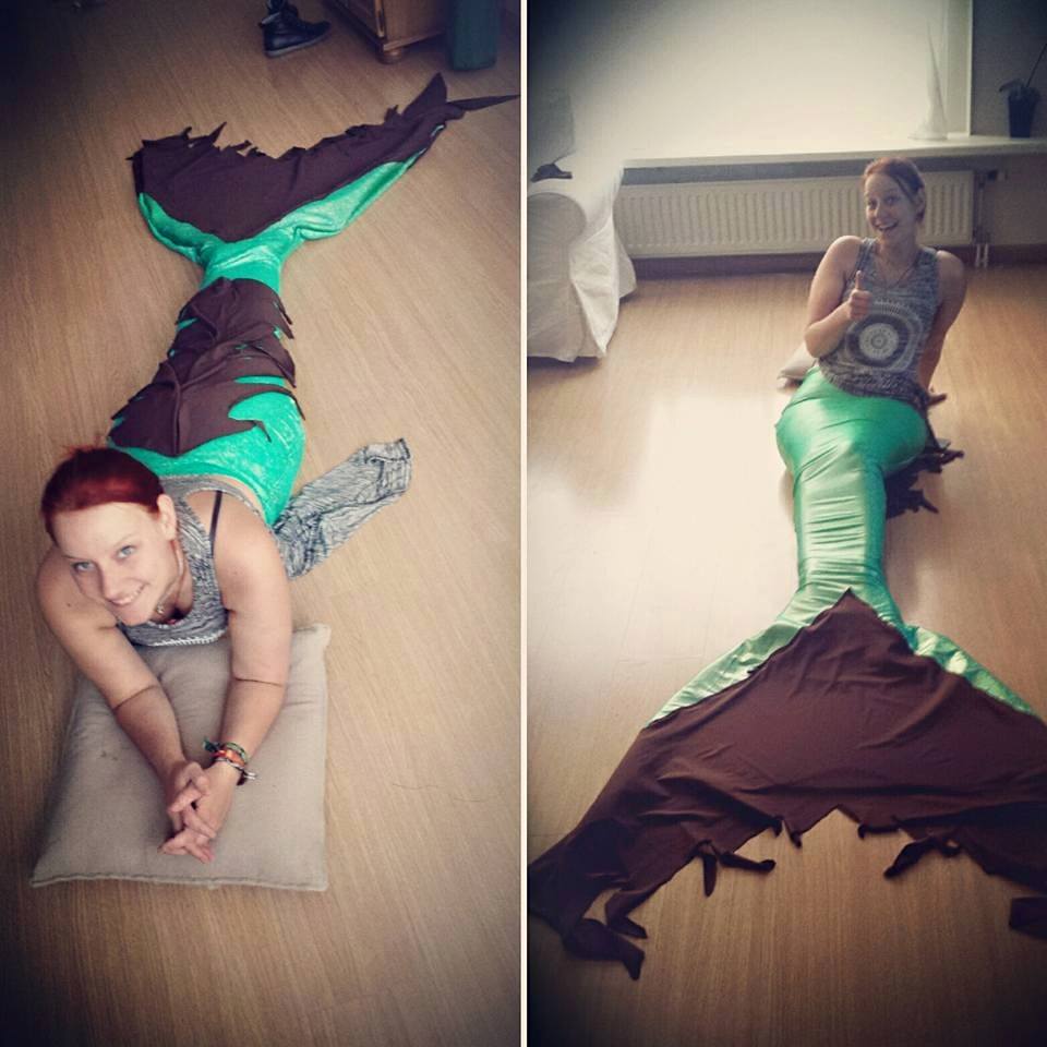 This is my very first selfmade fabric tail. The fabric had the most beautiful shimmers on it. Sadly, most of those shimmers are faded now due to the chlorine. But I still love my tail sooo much! Am working on a second tail now :)