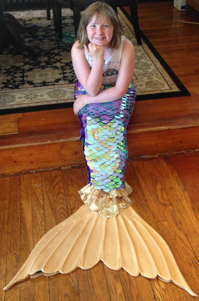 Rowan's new tail! Sequin tails are awesome. :) (The fluke is not yet glued shut, because we're still sharing a monofin...)