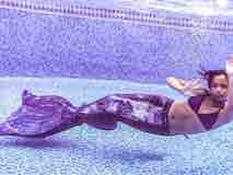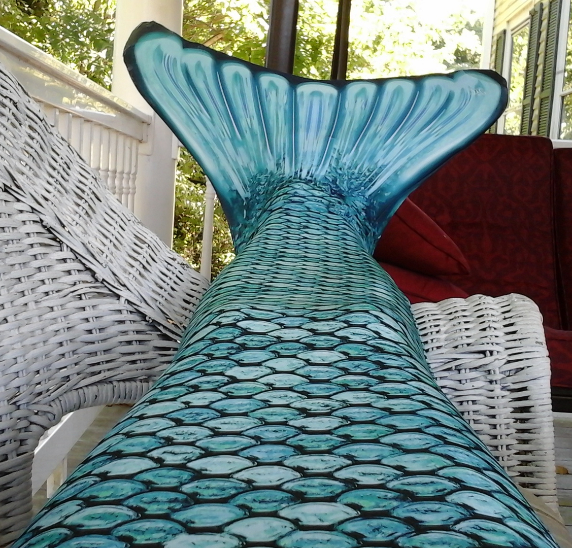 The tail skin is from Magictail of Germany. They have other similar tails too in different colors. I added the fins and lengthened the fluke. I love their tail skin colors but their monofins don't give much propulsion. It is very hard to move forward doing a nice undulation. Instead with this tail, I find myself having to bend at the knees and give a very pronounced strong kick from the knees to move forward. It looks so beautiful in photos, but for video I am going to retrofit the magictail skin to fit my mahina.