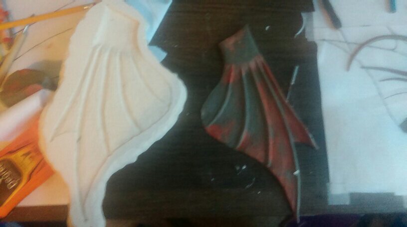 Started sculpting the fluke yet again third time's the charm. This time I will not remove the paper with the outline to insure that it is perfectly symmetric, learning from mistakes. Almost finished with all my fins, waiting to finish all of the extra fins to mold all of them at once cause last time I intended to mold just one and ended up making way too much plaster.