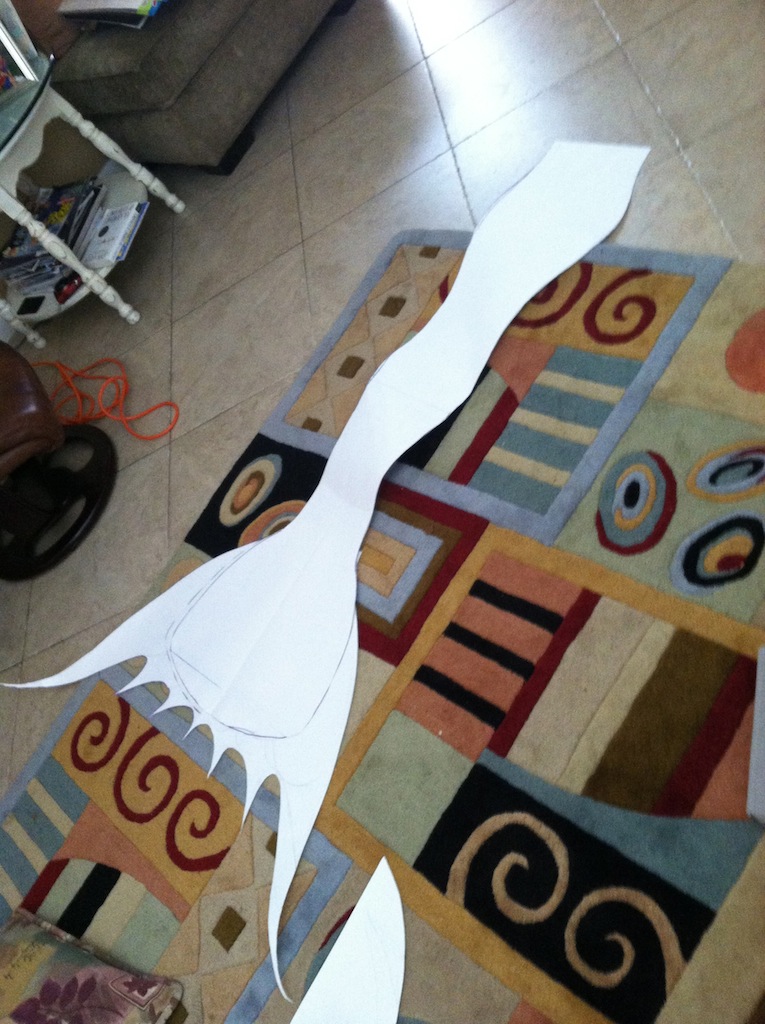 Although I shouldn't be molding and casting this tail for awhile, I have started with my pattern, design shape, and design colors. Right now I'm figuring how I'm gonna arrange the colors. Here is my pattern/fluke shape.