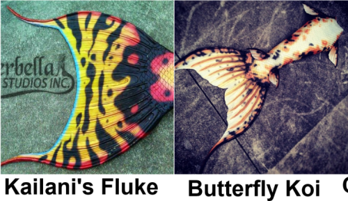 Okay sorry it took so long I had to source the images again and resize them to play nice. So these are all the flukes on offer that I know of from speaking to Raven. The Last one (Lunar Koi) is on offer, well at least it was offered to me so I assume it will be offered to others, but hasn't been completed in silicone yet. Also the Mantis Fluke and Raven's Lionfish fluke (also Raina's) are BOTH classed as Calypso by Raven, just variations she makes. Also the She-Creature Fluke (also the one used on Polyhymnia's Peacock tail is not officially offered as far as I know, so I didn't include it.)