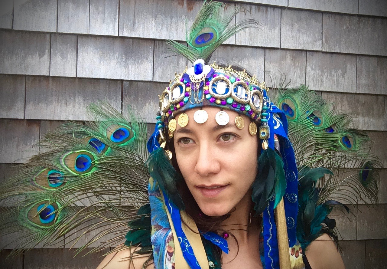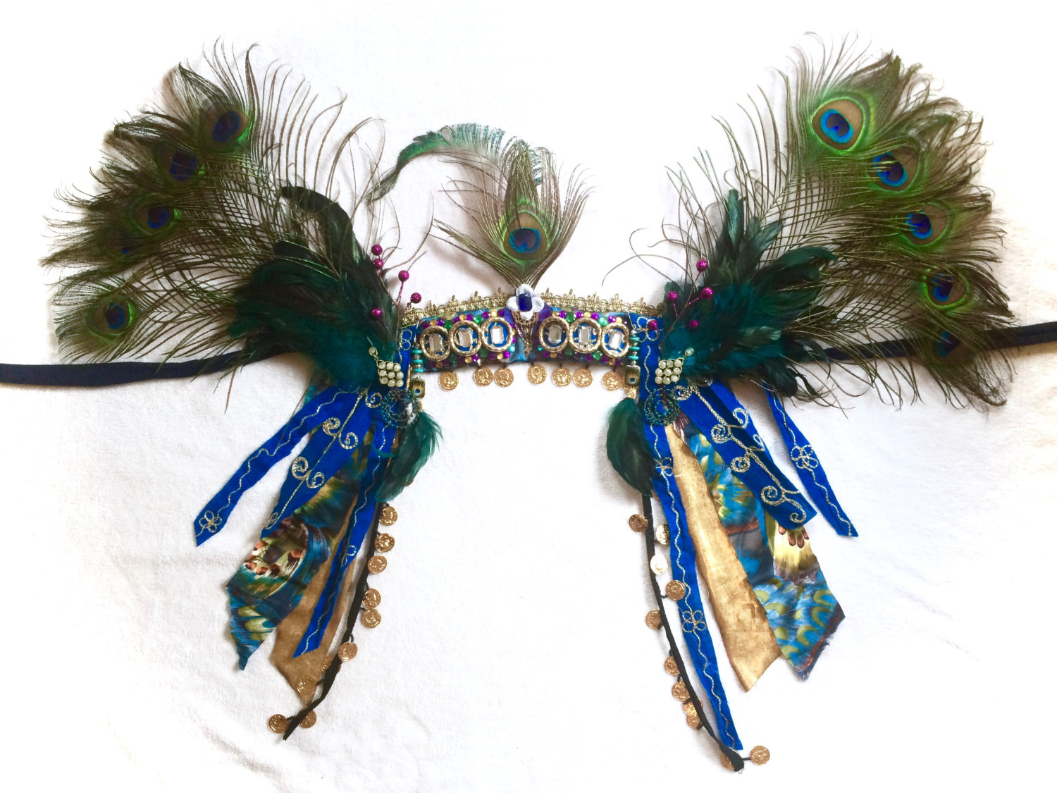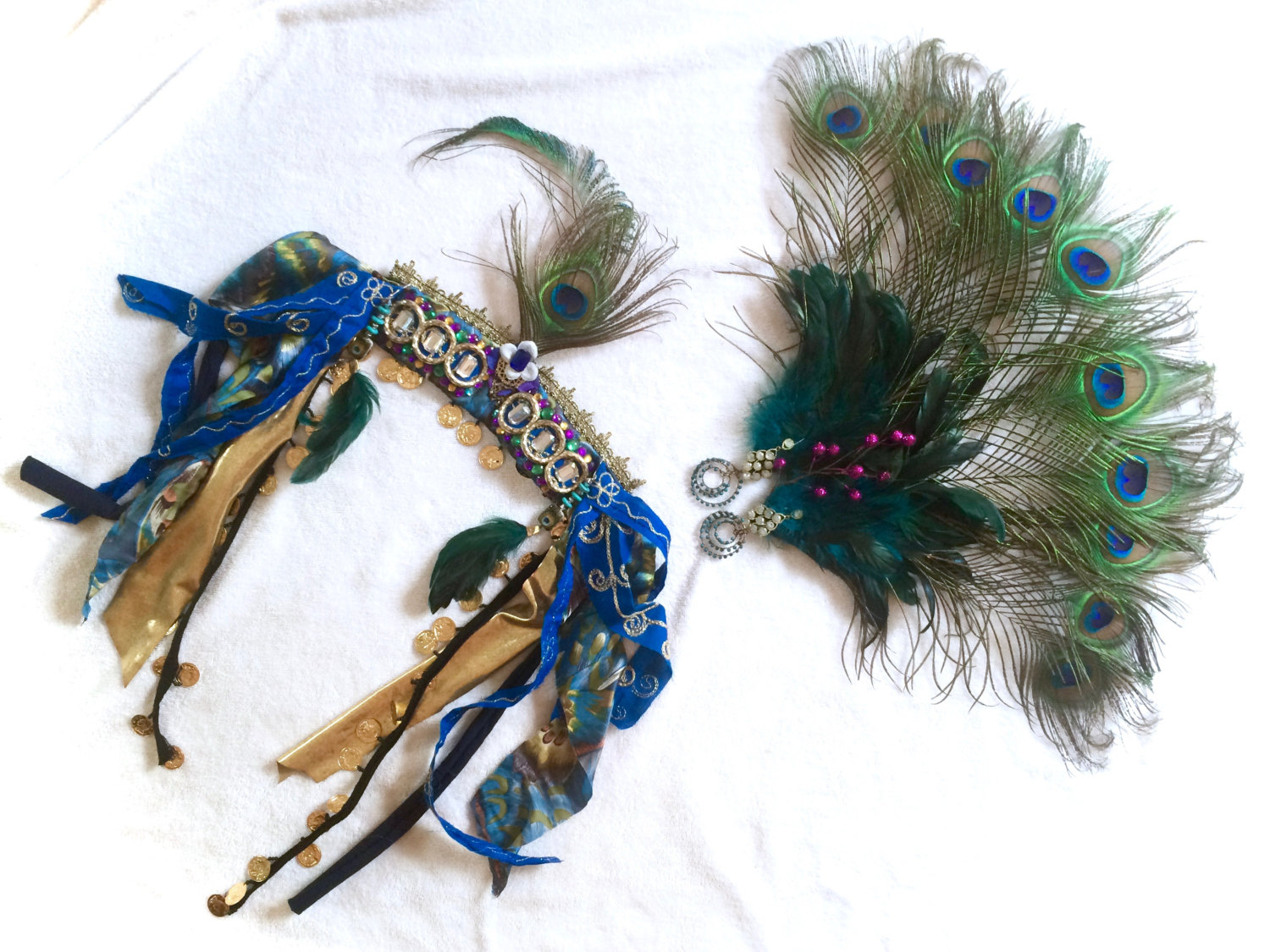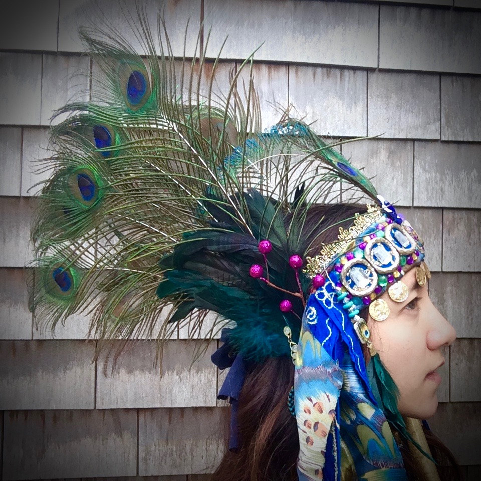While you've been finishing your peacock tail I made this Peacock Headdress that I wanted to show you! It's a 3 piece modular, the feather wing pieces have clips so you can attach it anywhere and makes for endless ways to wear. Just added to my HamptonsMermaid Etsy Shop! Yay peacocks!