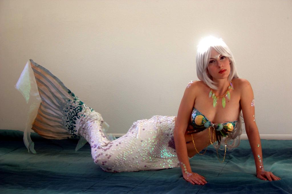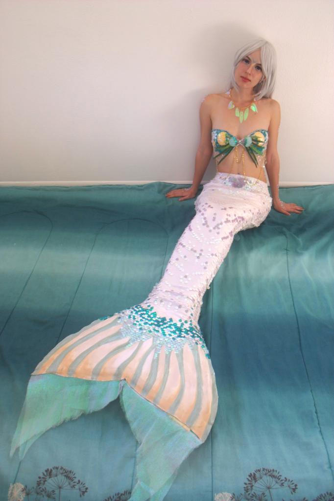 Here is me in my white sequin tail and iridescent accessories all made up anime style!