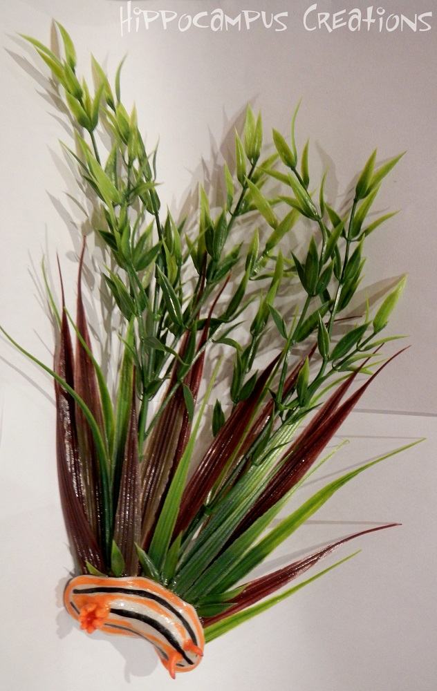 Just an example of how I set one of the sea slugs. This is one of my own, but awesomely it held up in the pool, though a couple of the long leaves came off due to there being no cap on the end to hold them...whoops XP (but now they're not going to move at all E6000 all the way!!)
