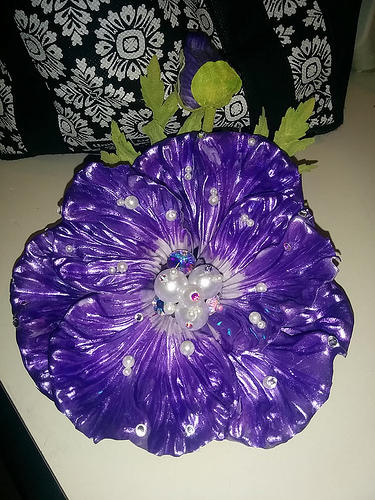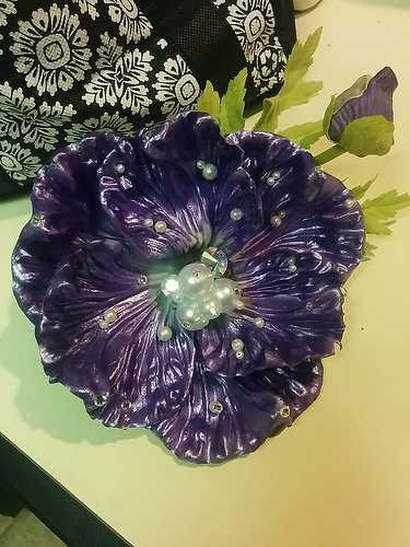 New hair flower for my Little Mermaid ensembles; it's HUGE. Will update with pics once it's on my but I am happy with it! I custom painted, pearled & rhinestoned it and added the leaves & bud behind it (which I might add a few stones to as well)