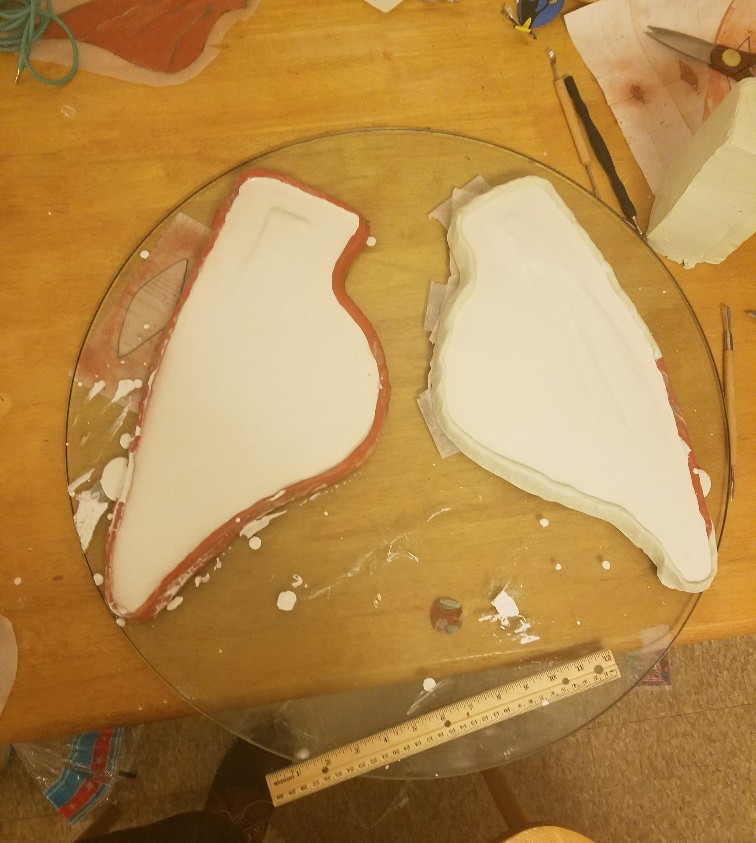 Finally got the plaster to mold the fins and scales sooo happy but I'll be needing more for the dorsal but for tonight I'll only mold these 2 cause I don't have much space and in the morning I'll mold the rest...
