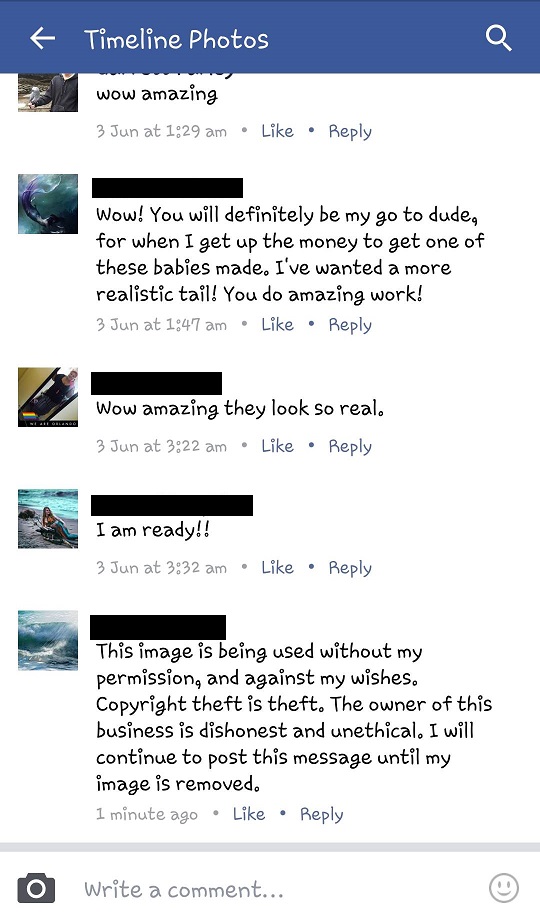 I actually reached out to the lady with the tail issue and am trying to see if I can help assist in any way seeing how I choose to make a statement a few days ago. I hope I can help her or maybe offer to even buy her old tail. I've bought a few bad tail experiences off other mermaids and hope she just gets something nice, she likes and feels comfterble in and can continue in her business.