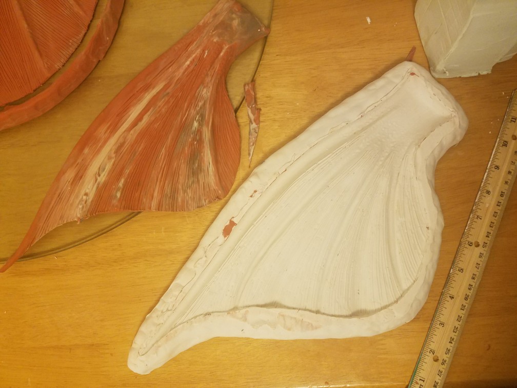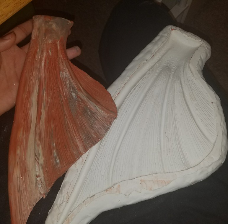 Started working on these again now that I'm done with all the front fins I'll add detail to this ones and then the dorsal but for tonight I'll just work on these two halves of my heel fin number 2 (see picture on post #343) btw I'll only be using one fin for my supposed heel fin because it will technically won't be a heel fin that's just what it's called for us merfolk put seance it's an extended tail there won't be a heel bump but still I add the heel fin lol does that make seance I mean I m sought it more for the aesthetic look of it but I'm going to make another type of fin for this same spot I'll figure out later which to cast for the tail...