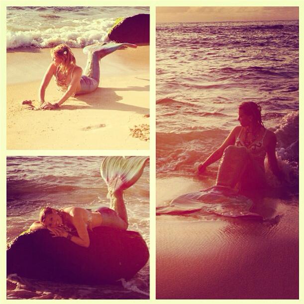 The best way to wear a wig underwater is to braid your hair (like in corn rows) and pin the wig onto your braids OR use a silicon swim cap and punch holes into it using hair pins to pin the wig onto it. Basically you need an anchor for allot of pins to keep the wig on. In most of my underwater shoots I have used extensions, i definately recomend using clip ons over a wig, less of a hastle.