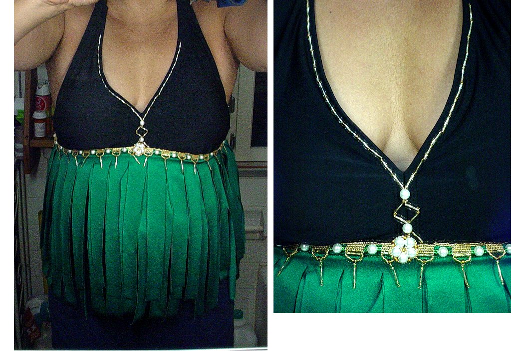 Over the winter I plan to add more bead work to the top, eventually covering anything that is black, leaving me with the green, gold, and pearl white that I originally wanted for a color scheme. I put this top together in about a week from start to finish all based on something I saw in my head. If I hadn't needed to rush it I would say it was fun to make. I did 2 wks worth of bead work in 4 days, so that kinda sucked some of the fun out of it.