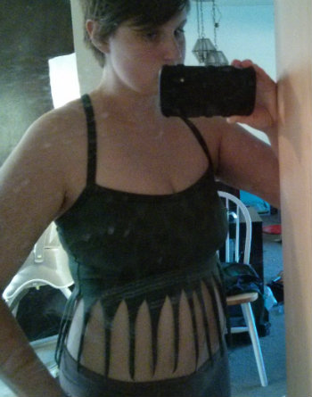 I am working on a simpler top that I can wear under my rashguard if I want to. I need IDEAS! How do I make this look completely awesome?Attachment 33034