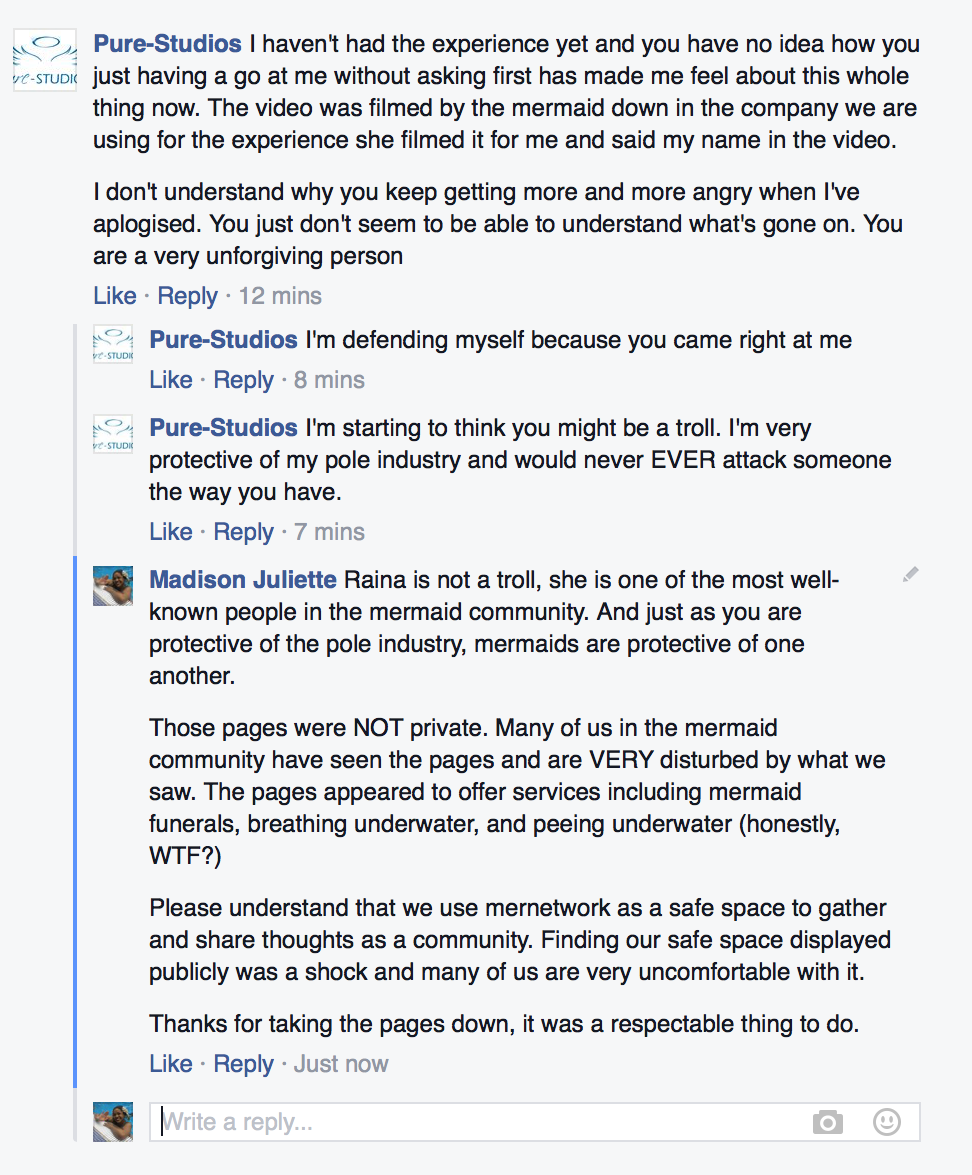 Well considering Pure-Studios just deleted Raina's entire thread from their site I think it is safe to say they are not a troll baiting the enraged mermaids.