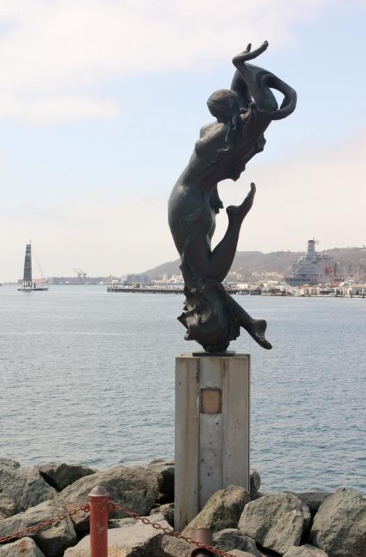 Last night my love took me for a walk along the marina at Shelter Island. There's the loveliest statue there, called Pacific Spirit. There's an inscription by Anne Morrow Lindbergh, "The waves echo behind me. Patience, faith, openness, is what the sea has to teach."
