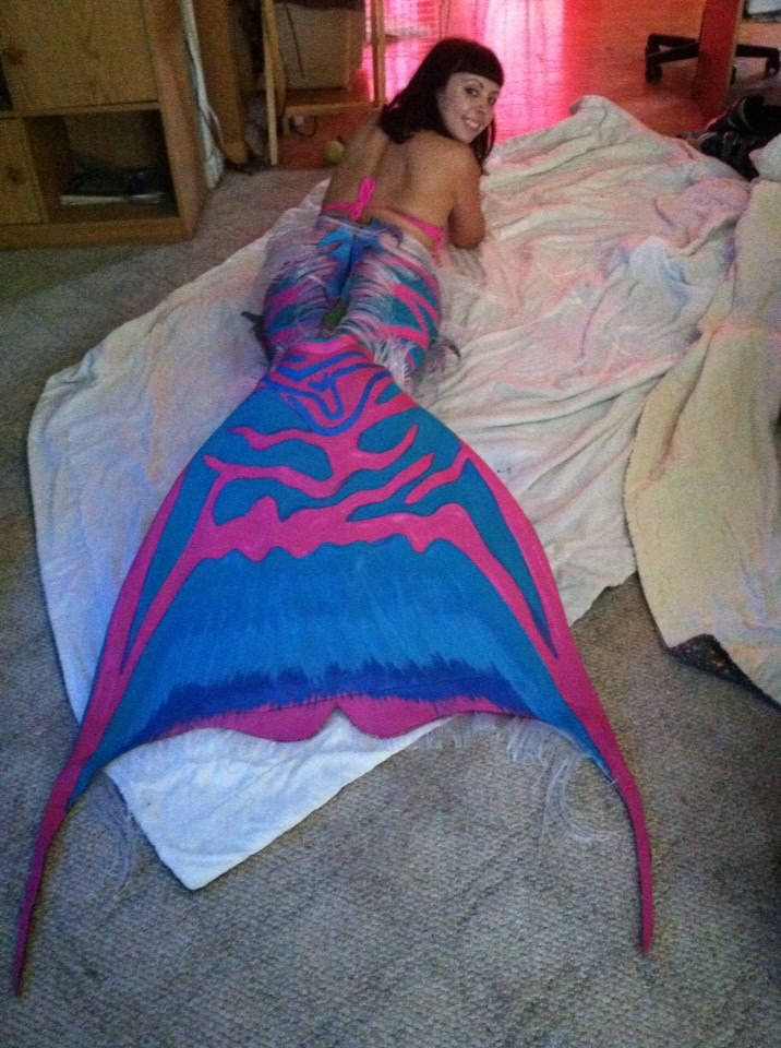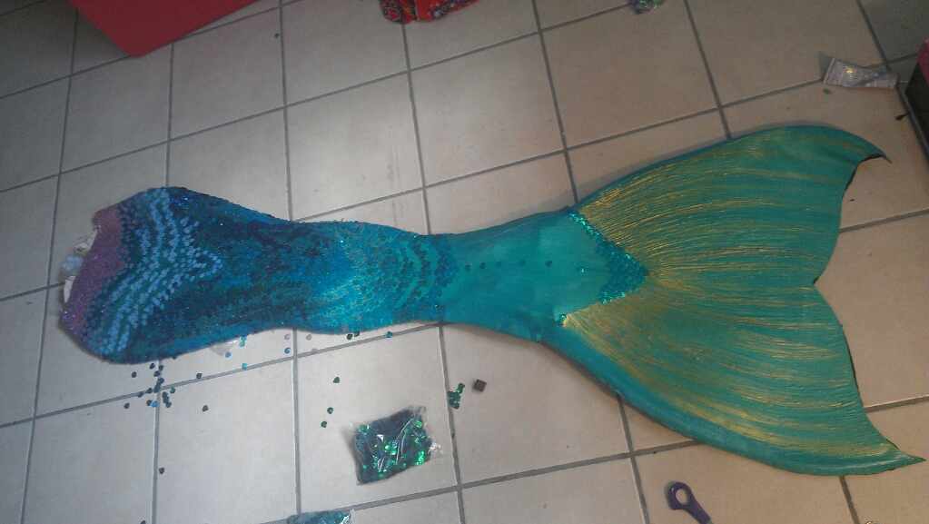 Here's a quick tail that I'm making to swim in. I was asked to come appear at Liquid Planet in Candia, NH on the 27th and I needed a tail that could be in water, since my Steampunk tail isn't a tail that I'd attempt in water due to it being made with micro-suede and a leather like fabric.
