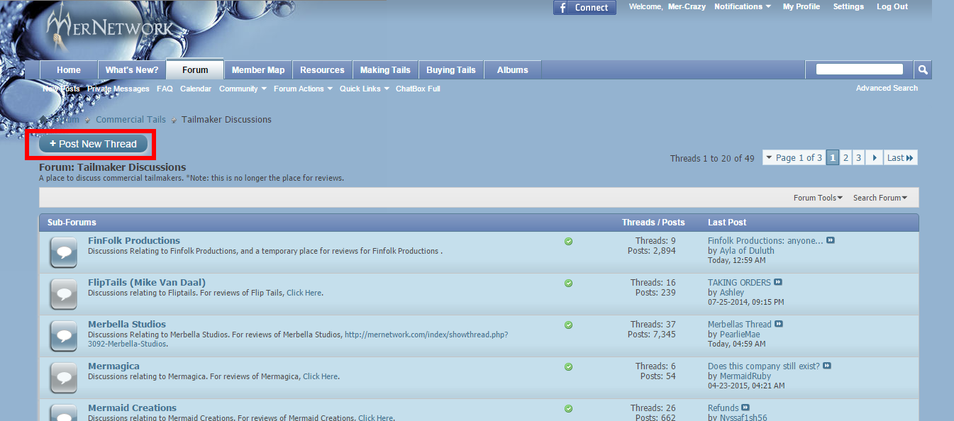 As for starting another thread of any other kind, just go the the section you want to start a thread in, say 'tail maker discussions' for example and then click 'post new thread'.