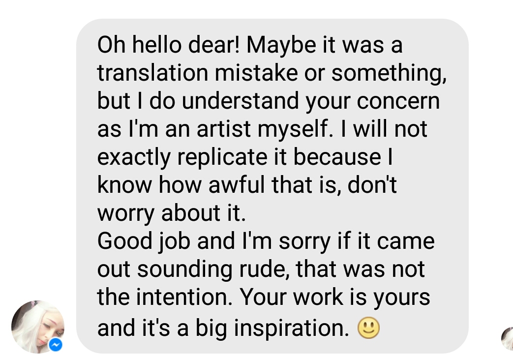 I banned them from the page and deleted their comments after I took screenshots. Sent her a message that was probably way too kind, but I told her the comment was rude and disrespectful, and told her that making a copy is a form of stealing. She can try making a top with lights if that's her thing, but it's not easy. Just don't "replicate" it