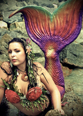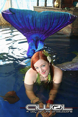 •In that same line, most tails will wrinkle in some places. Why? Because the material stretches, and because we bend. The most common places for winkles are around the knee, and the ankles. If a tail is skin tight, it's still NOT skin, it's common to get wrinkles there. Some tail makers compensate by making those areas extra tight. It may give a good look, but can make it difficult to swim and move. Also tricky to get on (many have to reach down to pull monofin straps up when putting a tail on) It's been my personal experience that the thinner the material the likelier it is to wrinkle in those spots. My merbellas tail fit like a glove when I first got it. But it's thin. It still would wrinkle from time to time in those areas. My Jesse tail is super thick. it wont wrinkle as much, only in certain situations, but will still get a wrinkle in those spots. THE BEST WAY TO KEEP WRINKLES AWAY is to POINT YOUR TOES and keep your legs flexed. This is how so many mers achieve the wrinkle free look when posing for a photo. If I do that with my legs, I will have no wrinkles at all. You can also train yourself to swim and keep your legs straight behind you. I've lost weight now, so my merbellas tail is baggier (I'm saving up to have it taken in and extra fins added etc) a good trick for that sort of situation that I found in my experience works with ALL tail types, is to wear tights underneath. It gives the material something more tactile to grip to, reduces the amount of slipping and wrinkling, and can flesh out the tail and take away the costumed look. Point is, some wrinkling is normal, it doesn't mean your measurements are wrong.