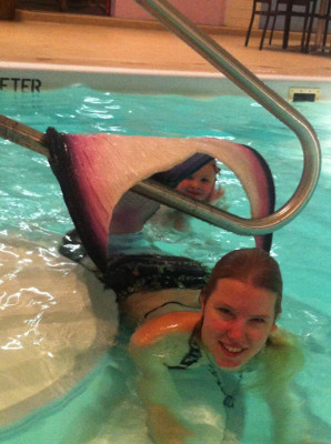 •Unless you have an elastic waistband put into your tail (like Hannas) regardless of the tail type, in some situations (or in all situations depending on your tail) you WILL get drag, which WILL pull open your waist. Many mers compensate for this by wearing belts. However, it's nearly impossible to keep air/water from travelling into your tail through the waist line. In the behind the scenes for Splash the tail makers explained that the way they achieved such a realistic effect with Madison's tail (no waist line, no knees, no wrinkles etc) was to shrink wrap her legs in plastic. It doesn't mean your tail doesn't "fit". The majority of materials mermaid tails are made out of have some percentage of stretch. Silicone stretches, latex stretches, fabric stretches, neoprene stretches.