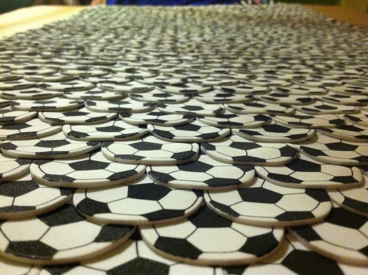 Daily Update- Soccer ball foams came in! I instantly started working away:) Here's what it looks like right now. They give a nice rise. You may not be able to see so well because of the pattern.