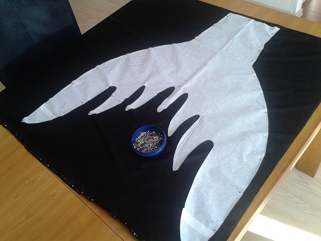 But I have a liiiiitle progress. I drew the fluke shape on the plastic floorprotector.
