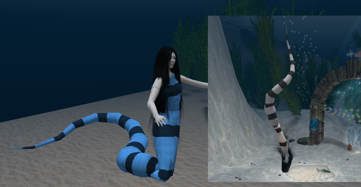 I am very active in SL and am a full time mer (octomer/cecaelia). I have a pod of dolphins that I pilot around the waters of SL with up to 11 passengers. We meet next to the (previously mentioned) Safe Waters Foundation Headquarters at 2pm (PST/SLT) every Sunday. It's a lot of fun.