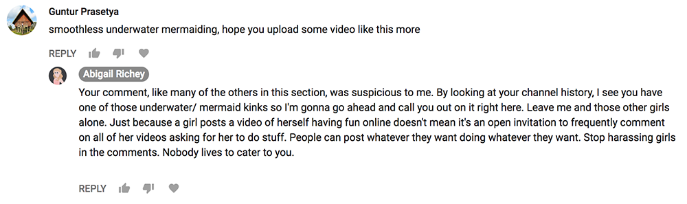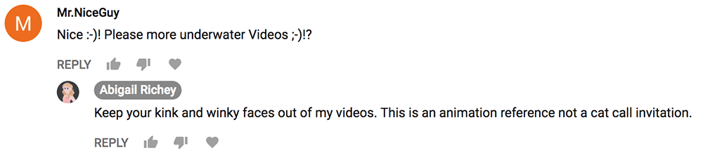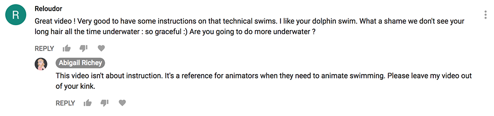 Ughhhhh. I got a bunch of creeps stumbling upon my personal channel where I uploaded a swimming animation reference video some of my friends needed. I guess it's time to call out some more creeps.