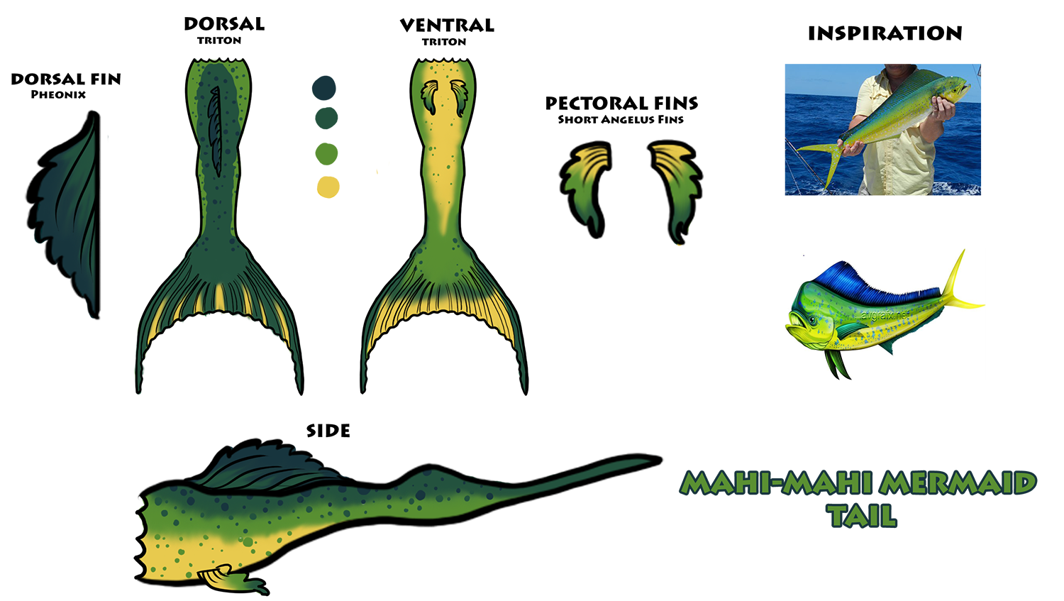 My design for my Mertailor mermaid. Inspired by the Mahi-Mahi / Dorado / Dolphin fish. I grew up with these fish and it was how I became part of the Sea.