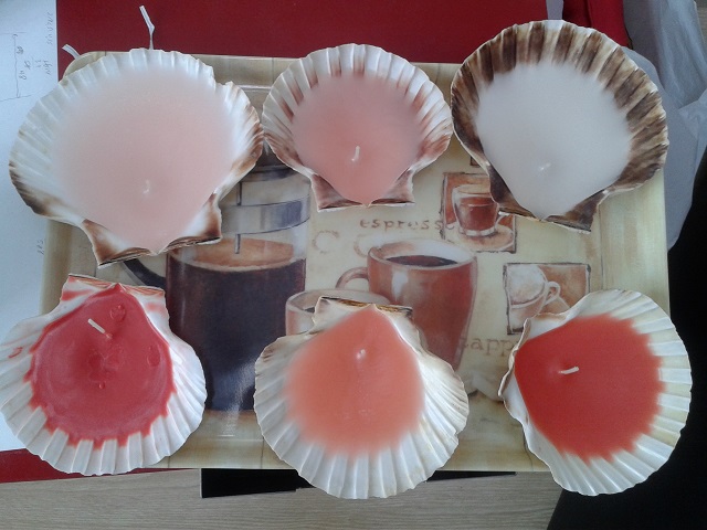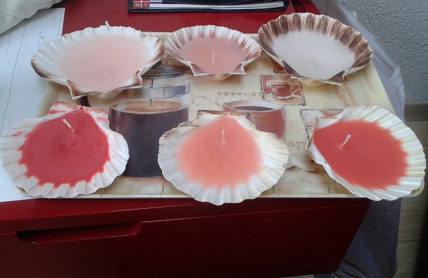 Melted the wax, mixed some colors-shades and poured it in the shells.