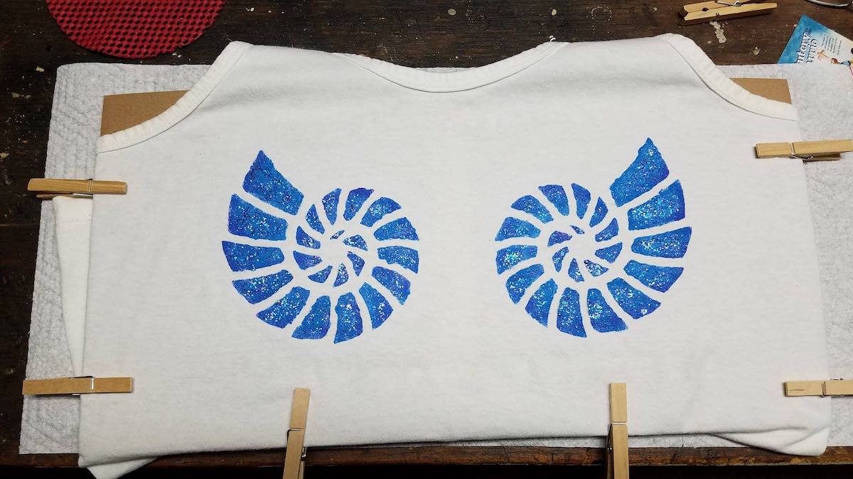 Made myself a "shell bra" tank top! The paint is still drying, but I couldn't wait to show it off.