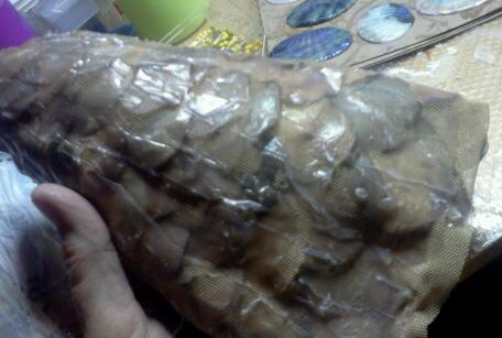 I'm making a miniature of scales adhered to powermesh, like I will be doing with my tail. Maybe I should have proved this concept before I cast over a thousand scales and built my tail. :doh: