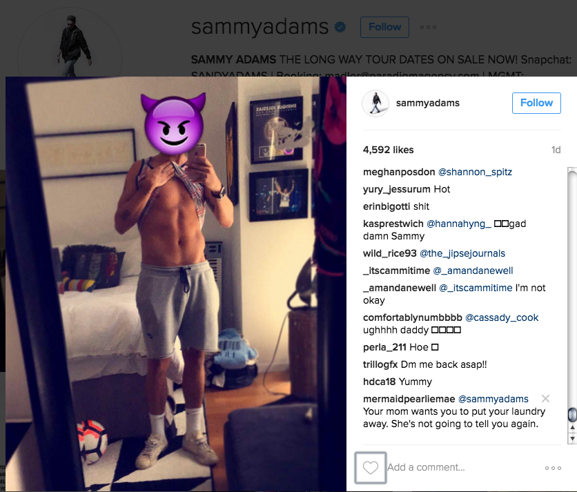 That was me. I found his mom's name on his Wikipedia page and searched for her. She's @mamawizzy. His dad is @cmwizzy. Ironically, his dad recently posted a pic of a girl twirling on the beach captioned "beach joy". I guess only some people are allowed to enjoy themselves on the beach?