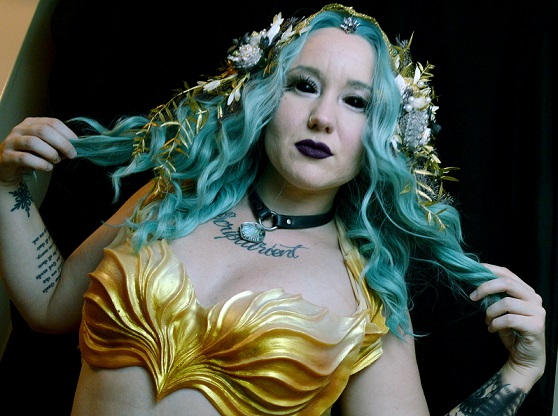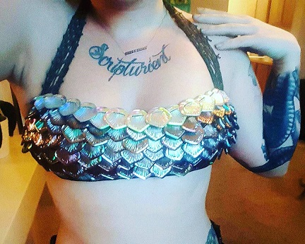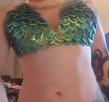 Completely handmade top using stretchy material, fishnet, Mythic scales.