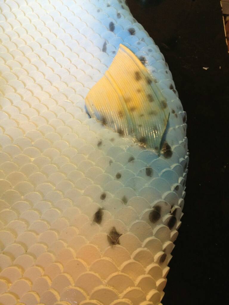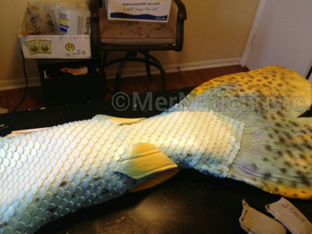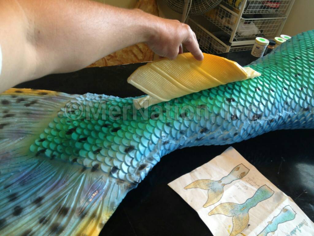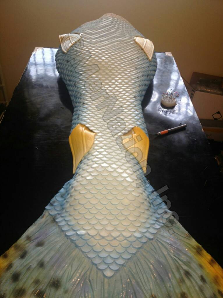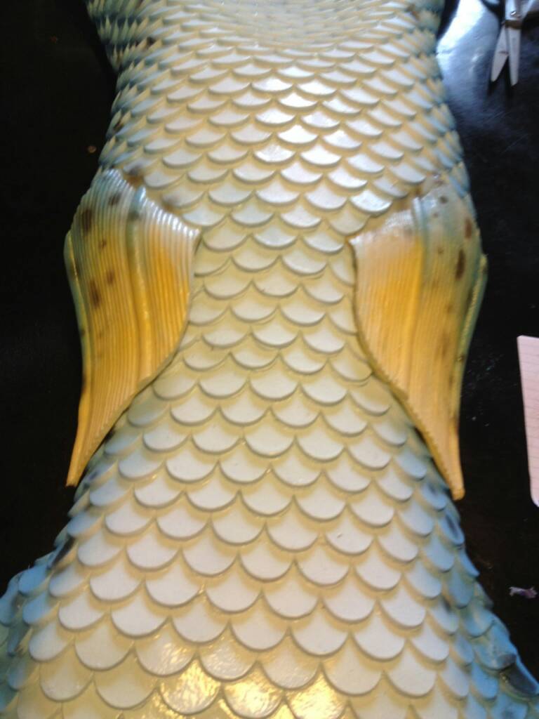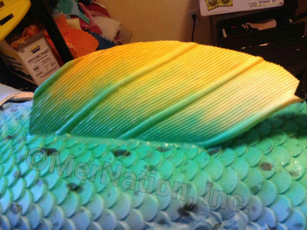 Now that I see your tail, painted, just.... No words can do it justice! I really love it, with all the dots, the long, flukes, the colors.... It's just crazy-awesome! You have one fantastic tail right there!
