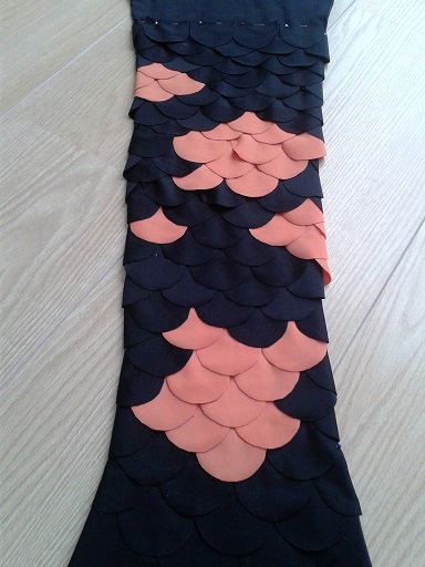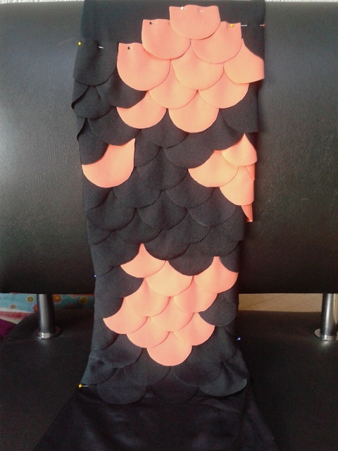 I hope I can get the scales sewed on as nice as I pinned them on... It's really tricky fabric
