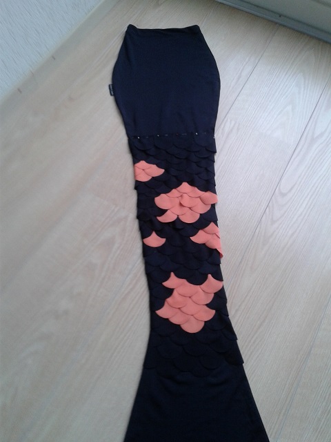 Another picture I took with the scales pinned on. I had to remove them from the tail a few days after because I took it for a test swim at my former swimclub. I just love, love, love how they look on the tail.