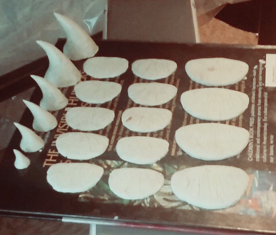 Got a few scales done the other ones were not matching with my new fluke design so new scales even though they are the most comon or generic scales out there LOL So yeah taking all day today to sculpt, need more caly!!! I'm no longer building up the thickness of the tail in layers im making a double mold for the whole tail body. Like Linden Walberts tail...