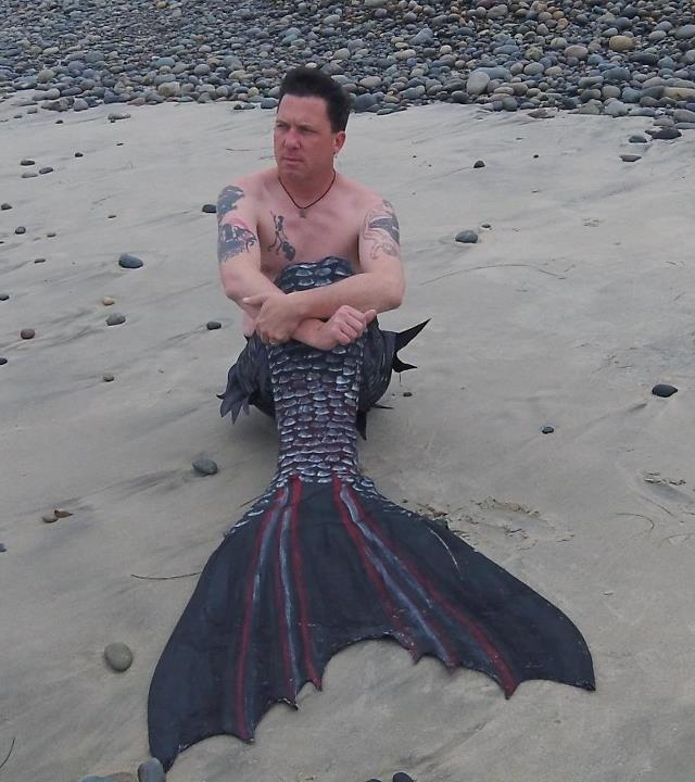 2.2.- my mertailor tail after Raven sewed a 10 inch extra piece on the waste so it fit, re-did the scales and paint, and glued the fluke down. It still didnt last long because it wasnt real neoprene, made of alex plus, and createx is just bad for chipping and coming off.