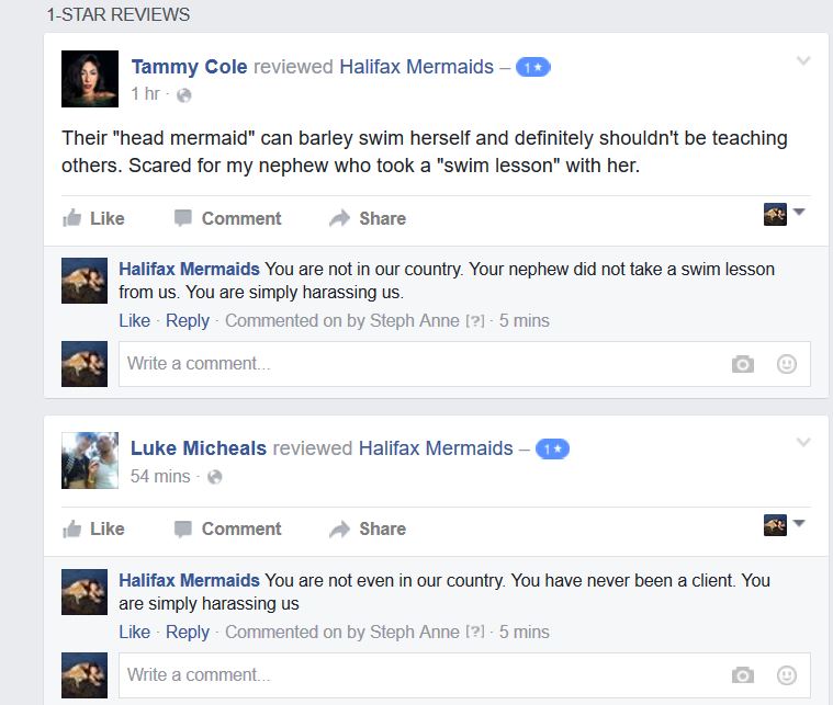 The mermaid in question's friends have now started attacking my business as retribution, leaving fake reviews. Since they threatened me in the comments, I shouldn't be surprised.